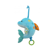 Woody Toys Cunero Delfín 110220, cunero de peluche de 11,5 pulgadas con tira para colgar, aro texturado y bordados marinos, ideal para cuna, cochecito o huevito desde +0 meses.