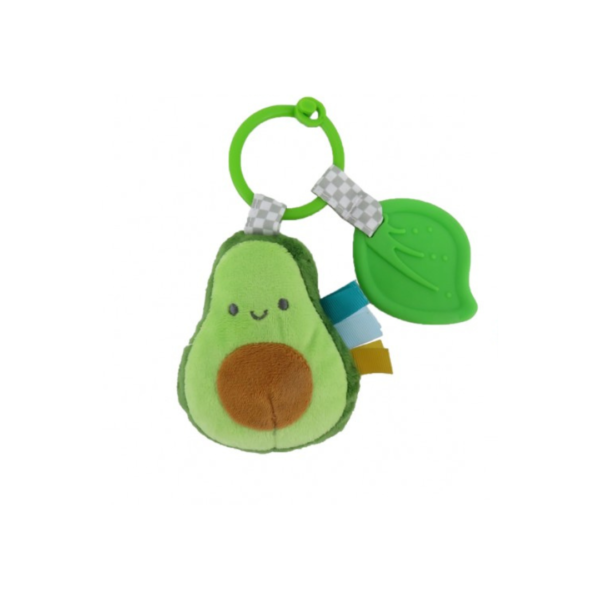 - Mordillo texturado en forma de hoja para masajear encías durante la dentición.