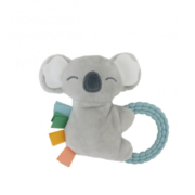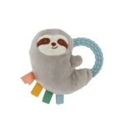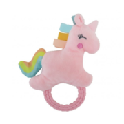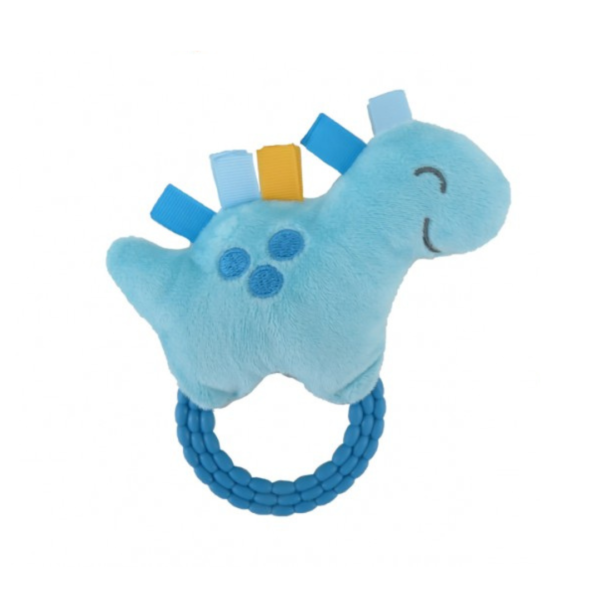Combina peluche super soft con mordillo de aro integrado en una sola pieza compacta.