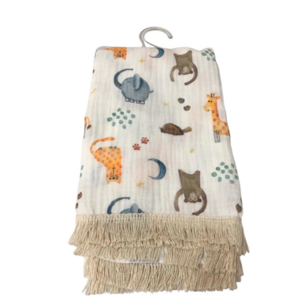 1 Manta Recibidora de Doble Gasa 100% algodón con terminación de flecos.