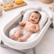 Lo que lo distingue es su diseño tipo colchón flotador, que combina acolchado, soporte y adaptabilidad en un solo producto. A diferencia de accesorios rígidos, ofrece una experiencia más suave y confortable para el bebé, con la ventaja de ajustarse a bañeras diversas. También es una opción práctica para quienes buscan una ayuda extra al momento del baño.