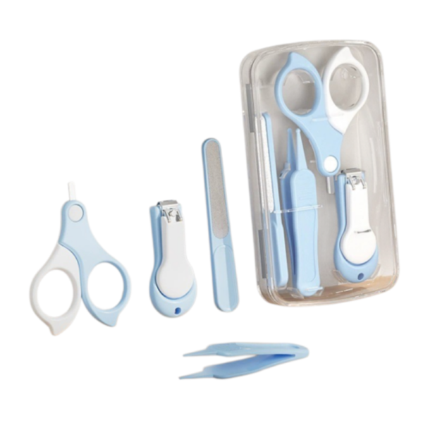 El Set Manicura 4 Piezas A Wish Art. 102 es un kit básico de cuidado de uñas pensado para bebés y uso familiar, presentado en un práctico estuche transparente rígido que mantiene todas las piezas ordenadas y protegidas. Incluye cuatro herramientas esenciales para el recorte y limado de uñas, con diseño ergonómico en tonos suaves azul y blanco, ideal para tener siempre a mano en casa o llevar de viaje.
