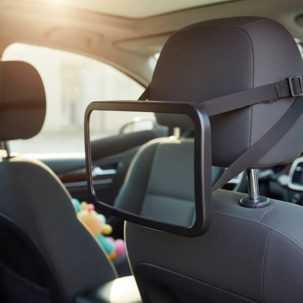 - Instalación simple y firme: La correa ajustable se adapta al apoyacabezas y mantiene el espejo estable durante el trayecto.