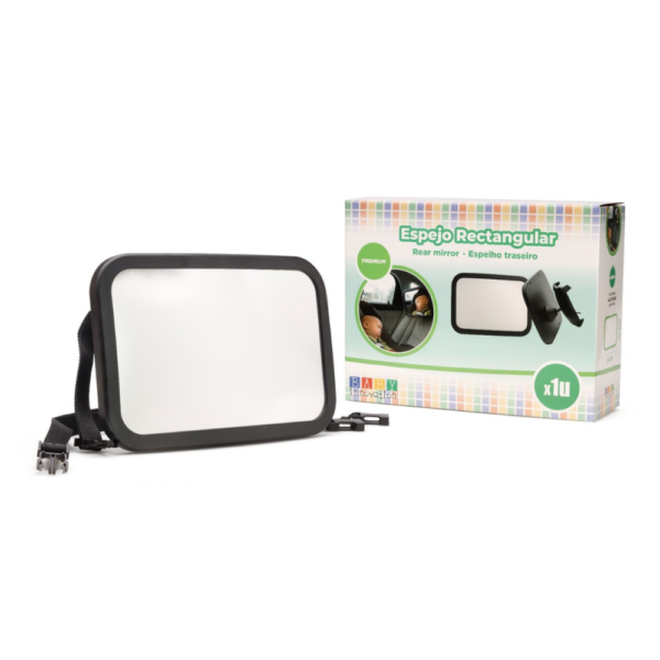 El Espejo Rectangular Baby Innovation es un espejo de seguridad para auto diseñado para observar al bebé cuando viaja en contramarcha. Tiene formato rectangular extra grande de 16,5 x 10,5 cm, con marco negro resistente y una superficie reflectante amplia que ofrece una visión clara del bebé desde el asiento delantero. Incluye una correa ajustable para fijarlo al apoyacabezas trasero y es ideal para mantener el control visual sin distraerse al conducir.