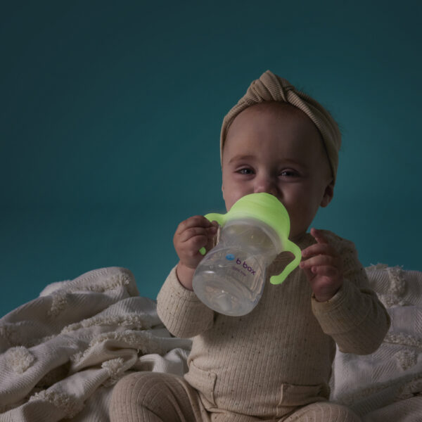 Bbox Sippy Cup Brilla en la Oscuridad es un vaso entrenador de 240 ml que brilla suavemente durante horas después de exponerlo a luz brillante, ideal para la noche. Cuenta con sorbete con peso que sigue el líquido desde cualquier ángulo, válvula bidireccional antigoteo para líquidos fríos o tibios, asas ergonómicas y tapa abatible higiénica. La base es compatible con tapa de entrenamiento y boquilla.