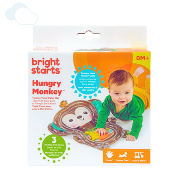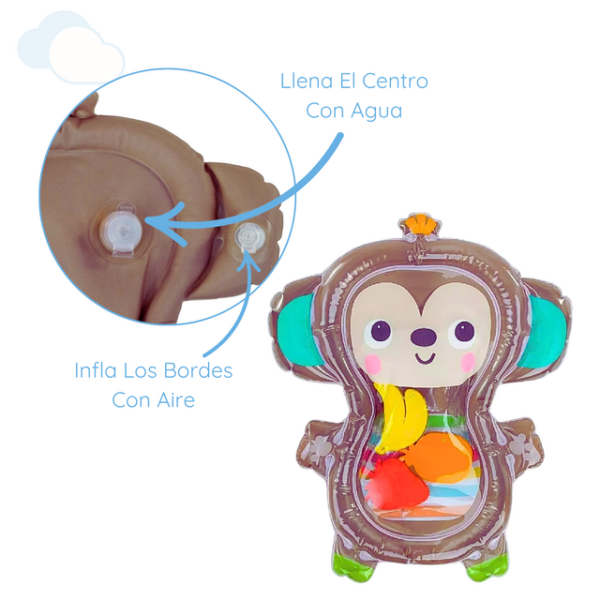 ¡La diversión sensorial comienza desde el primer día! La alfombra inflable Agua Sensorial de Bright Starts convierte el tiempo boca abajo en una experiencia divertida, estimulante y llena de descubrimientos. Diseñada con forma de monito, contiene 3 figuras flotantes en su interior para fomentar la coordinación, el desarrollo sensorial y la curiosidad del bebé.