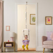 - Estimula la motricidad gruesa y el equilibrio mientras el bebé salta.