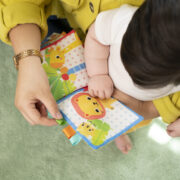 Al presionar las páginas, se activa el sonido crinkle que capta la atención y fomenta que el bebé manipule el libro repetidamente. Las cintas y los diferentes tejidos incentivan la exploración táctil mientras el niño crece y aprende.