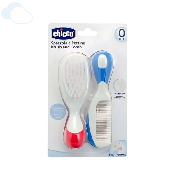 El set de cepillo y peine Chicco está diseñado especialmente para el cuidado del cabello del bebé desde los primeros meses de vida.