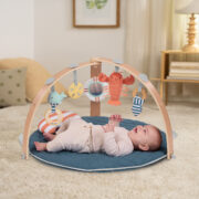 El Ingenuity Cozy Activity Gym Harbor Haven 17486 es un gimnasio de actividades para bebés desde recién nacido hasta aproximadamente los 3 años, que incorpora colchoneta ultra mullida reversible, arcos de madera natural plegables y 5 juguetes multisensoriales desmontables. Es parte de la línea Cozy Spot, pensada para ambientes modernos y con telas premium tipo “nube” para máxima comodidad.