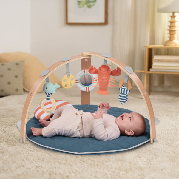 - Espacio extra acolchonado y amplio para que el bebé juegue boca arriba, boca abajo o sentado, sin riesgo y con inspiración marina.