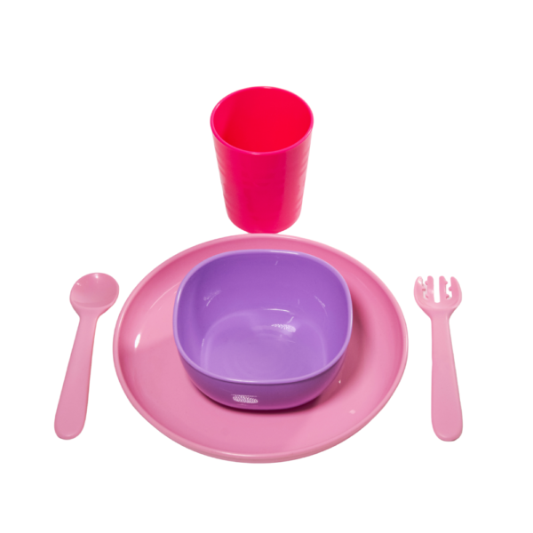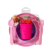 El Set de Vajilla Loopi 9176 es un kit de alimentación completo de 5 piezas diseñado para acompañar al bebé en sus primeras comidas independientes (+6 meses). Fabricado en material plástico resistente, libre de BPA y ftalatos, este set combina durabilidad con un diseño colorido para hacer la hora de comer más atractiva. Es una solución integral que cubre todas las necesidades de la mesa infantil, apta para el uso diario intensivo gracias a su resistencia a golpes y temperaturas.