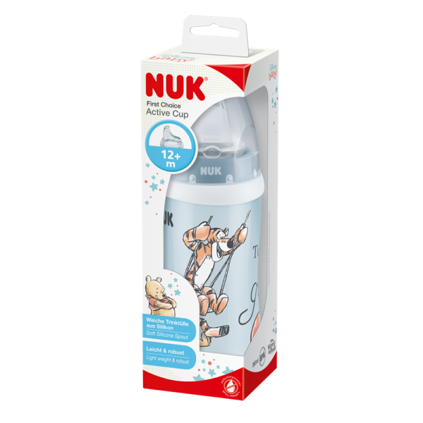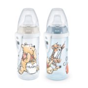 Nuk Active Cup 300ml Winnie the Pooh es un vaso de aprendizaje diseñado para niños activos a partir de los 12 meses. Fabricado en polipropileno (PP) ultraligero y extremadamente resistente, este vaso combina una gran capacidad con una boquilla de silicona antiderrame. Su diseño presenta tiernas ilustraciones de los personajes del Bosque de los Cien Acres Winnie Pooh y Tigger, haciendo que la hidratación sea divertida y atractiva. Lo que garantiza compatibilidad con otros accesorios de la marca.
