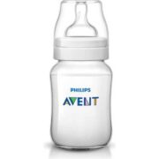 La Mamadera Philips Avent Classic+ de 260 ml (9 oz) es el tamaño intermedio de la gama clásica, recomendada generalmente para bebés a partir del primer mes (1m+) que necesitan tomas más grandes. Está fabricada en plástico duradero de alta calidad (polipropileno), totalmente libre de BPA, e incorpora una tetina de silicona de flujo lento. Este modelo destaca por su reconocido sistema anticólicos integrado directamente en la tetina.