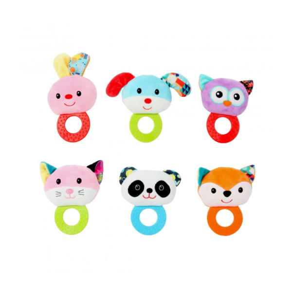 El Sonajero Woody Toys es un juguete de primera infancia diseñado específicamente para estimular los sentidos de los bebés desde sus primeros meses de vida (recomendado desde los 3 meses hasta 1 año). Consiste en un peluche de 5 pulgadas (aproximadamente 12-13 cm) con diseños de animalitos tiernos, fabricado en materiales textiles ultra suaves y acogedores. Incorpora además un mordillo de plástico/goma texturizada en su estructura, convirtiéndolo en un accesorio multifuncional ideal para la etapa de dentición.