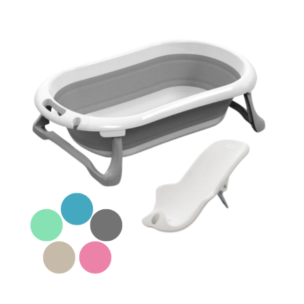 Optimización de espacio: Tanto la bañera como el reductor son totalmente plegables y cuentan con manija para colgar, lo que permite liberar el baño completamente cuando no están en uso.