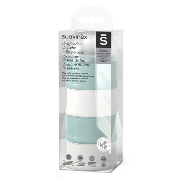 El Dosificador de Leche en Polvo de Suavinex es un accesorio práctico e indispensable para los paseos y salidas con el bebé. Fabricado en plástico 100% libre de BPA, permite llevar organizadas hasta 4 dosis de leche en polvo o cereales listas para preparar la mamadera fuera de casa de forma cómoda e higiénica, sin necesidad de llevar el tarro de fórmula completo en la pañalera.