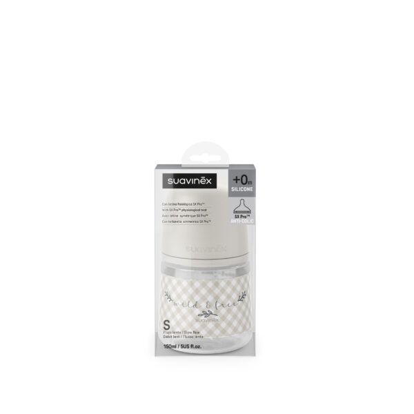 La Mamadera Prints Wild & Free de Suavinex de 150 ml es la versión más pequeña de esta colección, diseñada especialmente para recién nacidos desde el nacimiento (0m+) y sus primeras tomas. Fabricada en polipropileno (PP) y silicona, completamente libre de BPA y ftalatos, incorpora la tetina fisiológica SX Pro™ de Silicona con Flujo Lento (S). Sus diseños ilustrados con los motivos naturales y silvestres de la colección Wild & Free en tonos cálidos la convierten en una opción funcional y con mucho estilo para los primeros meses.