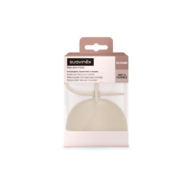El Portachupetes de Silicona Colour Essence de Suavinex es un estuche fabricado íntegramente en silicona de grado alimentario, libre de BPA. Diseñado en una única pieza sin uniones ni tapas desprendibles, tiene capacidad para guardar hasta dos chupetes de la misma colección, manteniendo siempre un chupete limpio e higiénico a mano cuando el bebé lo necesite. Se inspira en los colores de la naturaleza y está disponible en varios tonos a juego con el resto de la colección Colour Essence